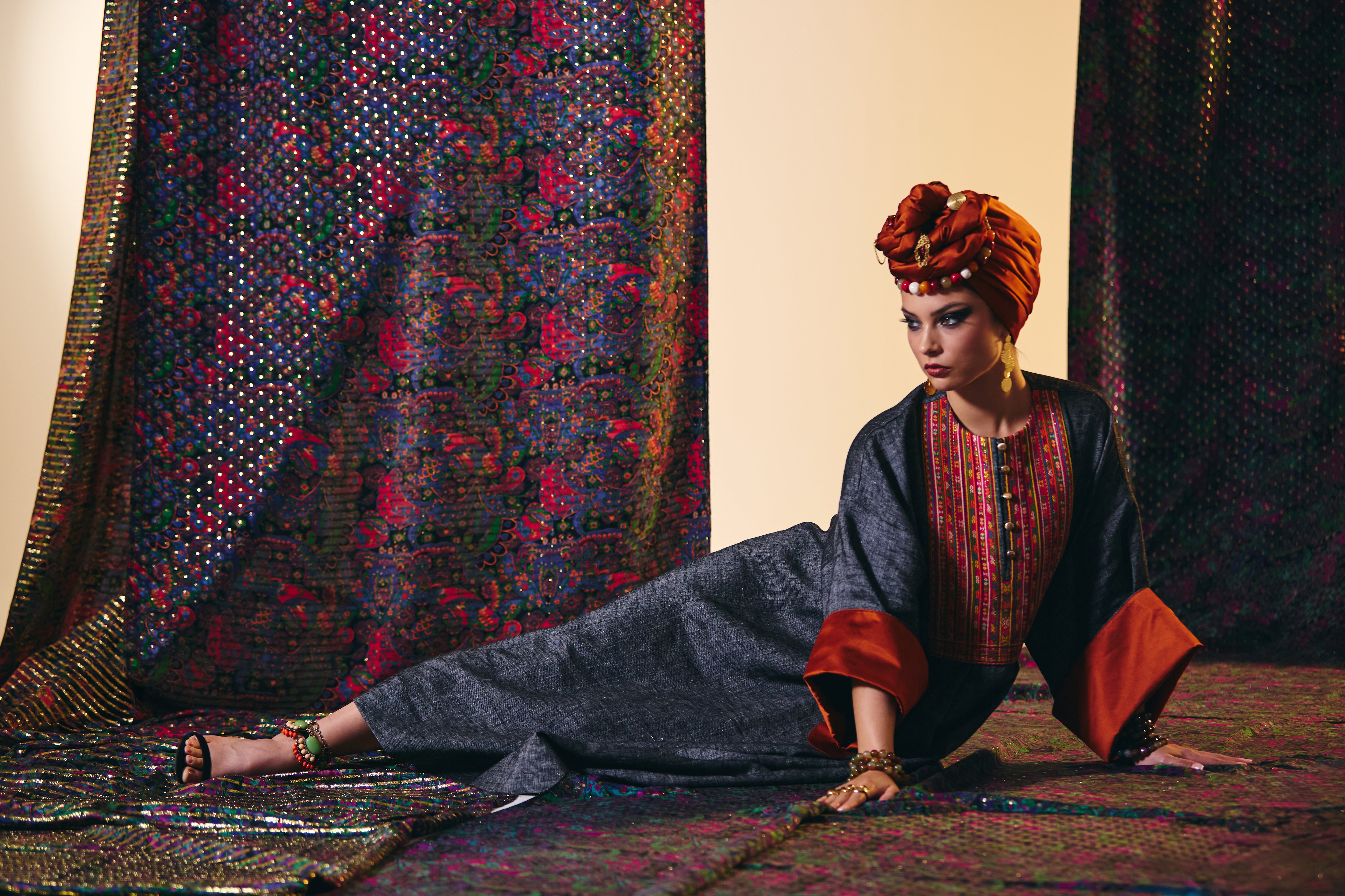 Silk Road Feather-Sleeve Kaftan