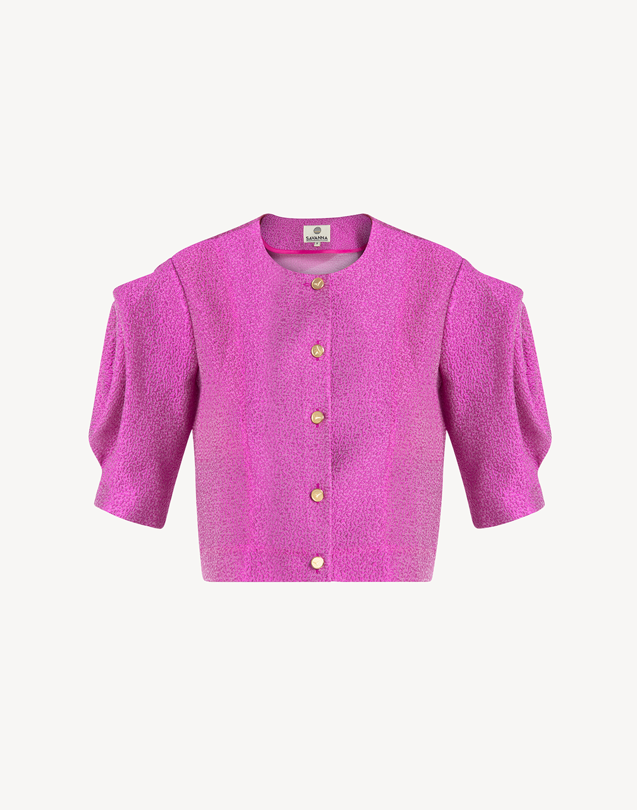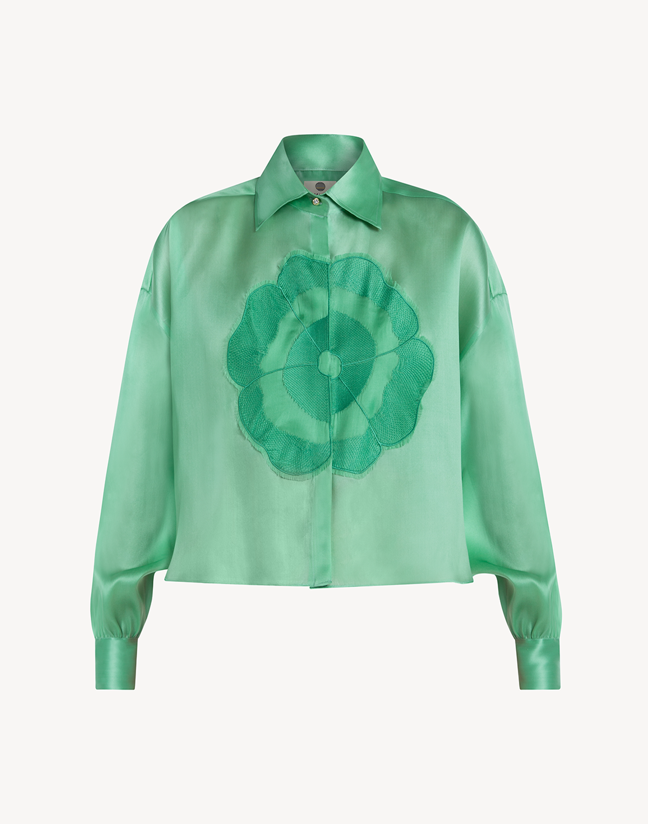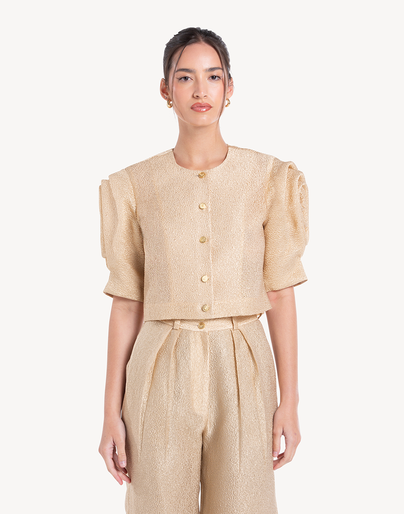 Sofia Silk Hemp Logo Appliqué Cropped Jacket