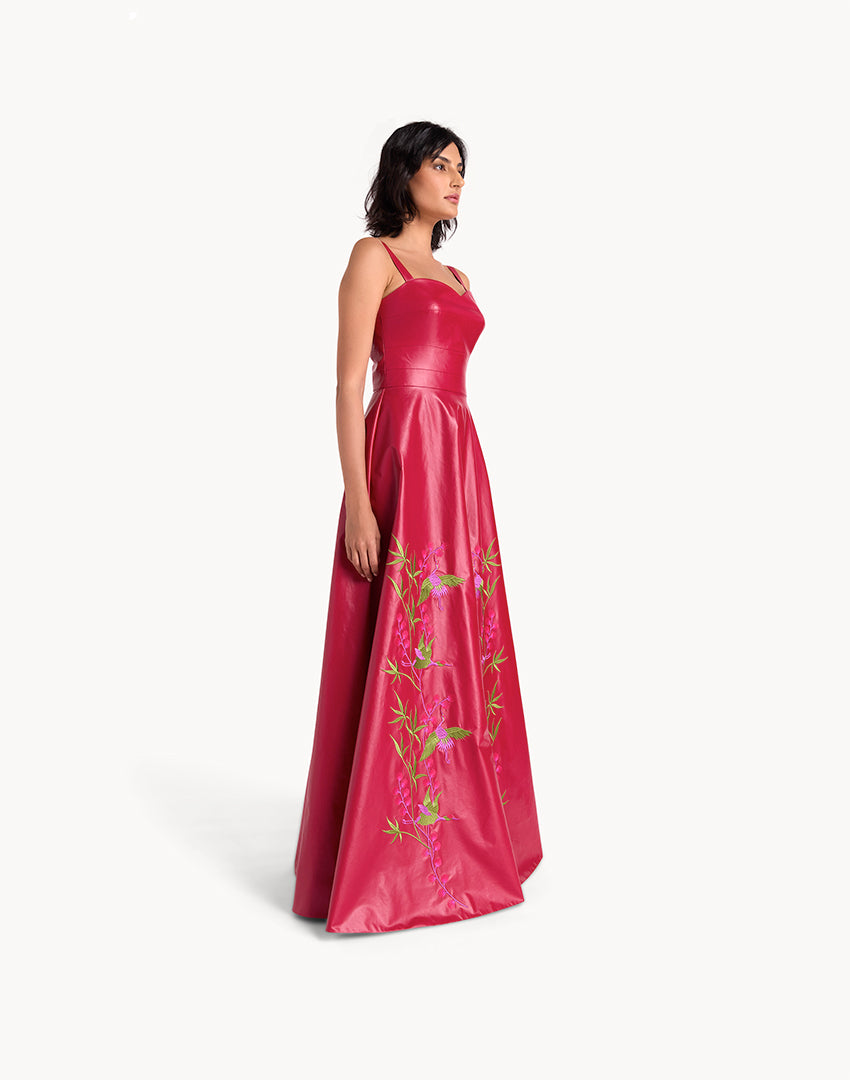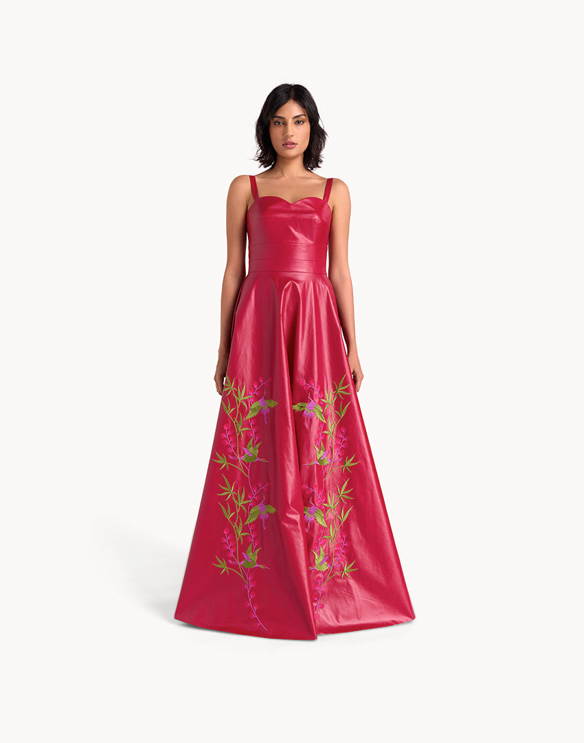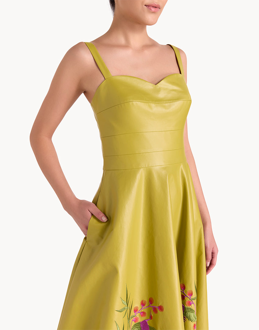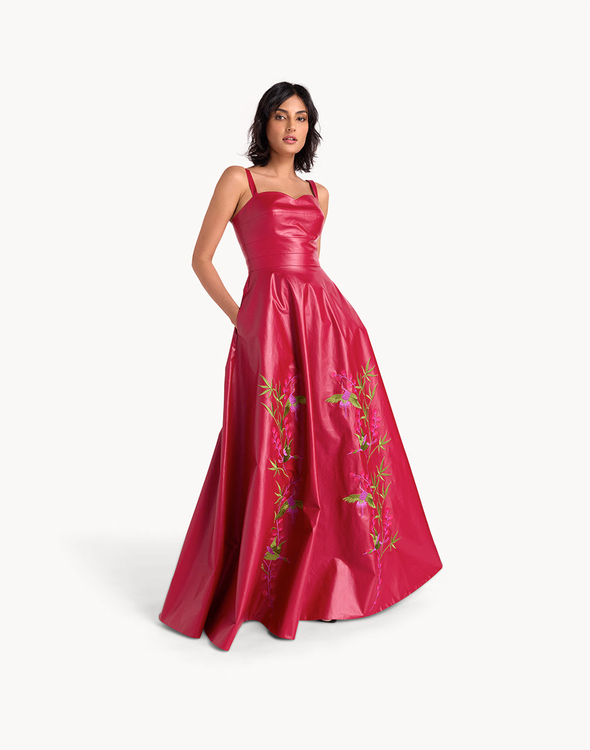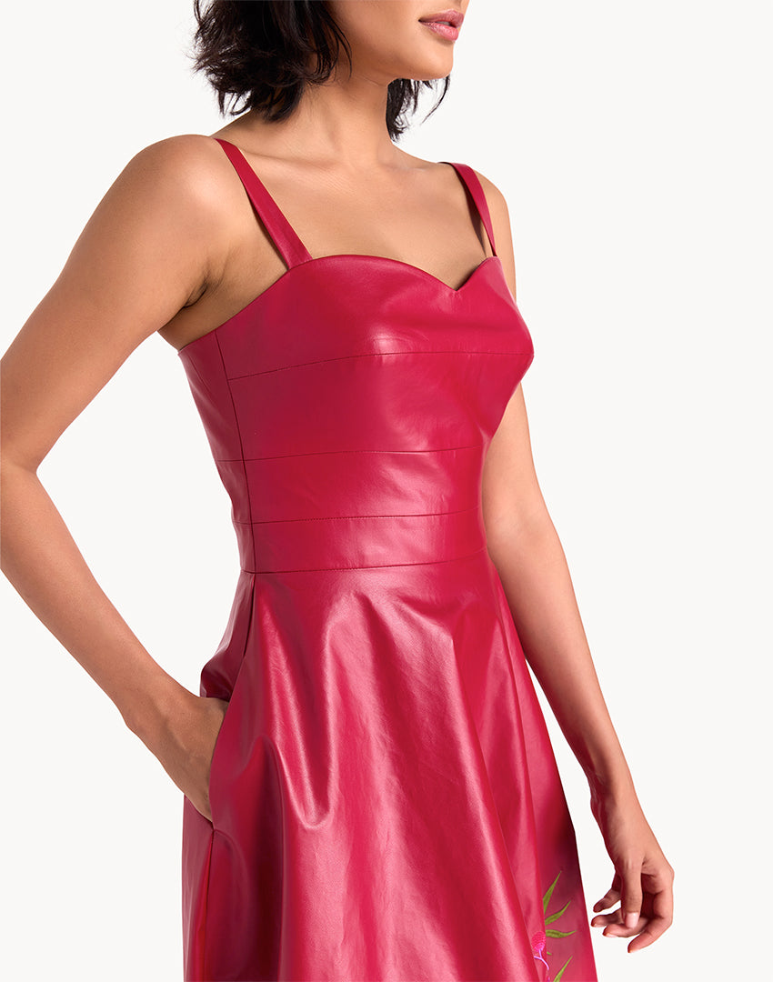 Get ready to blossom with the Sakura Collection's sweetheart maxi dress! With delicate cherry blossom embroidery, a flattering sweetheart neckline, and comfortable spaghetti straps, this dress will take your style to the next level. Who says faux leather can't be sweet?